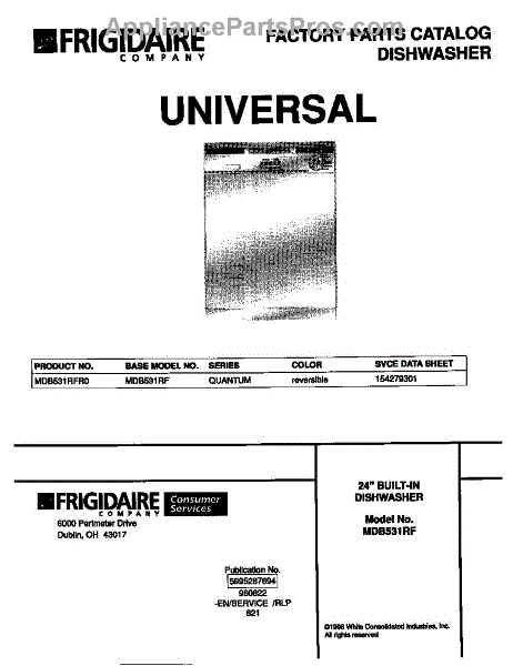 Parts for Frigidaire MDB531RFR0: 01 - Cover Parts