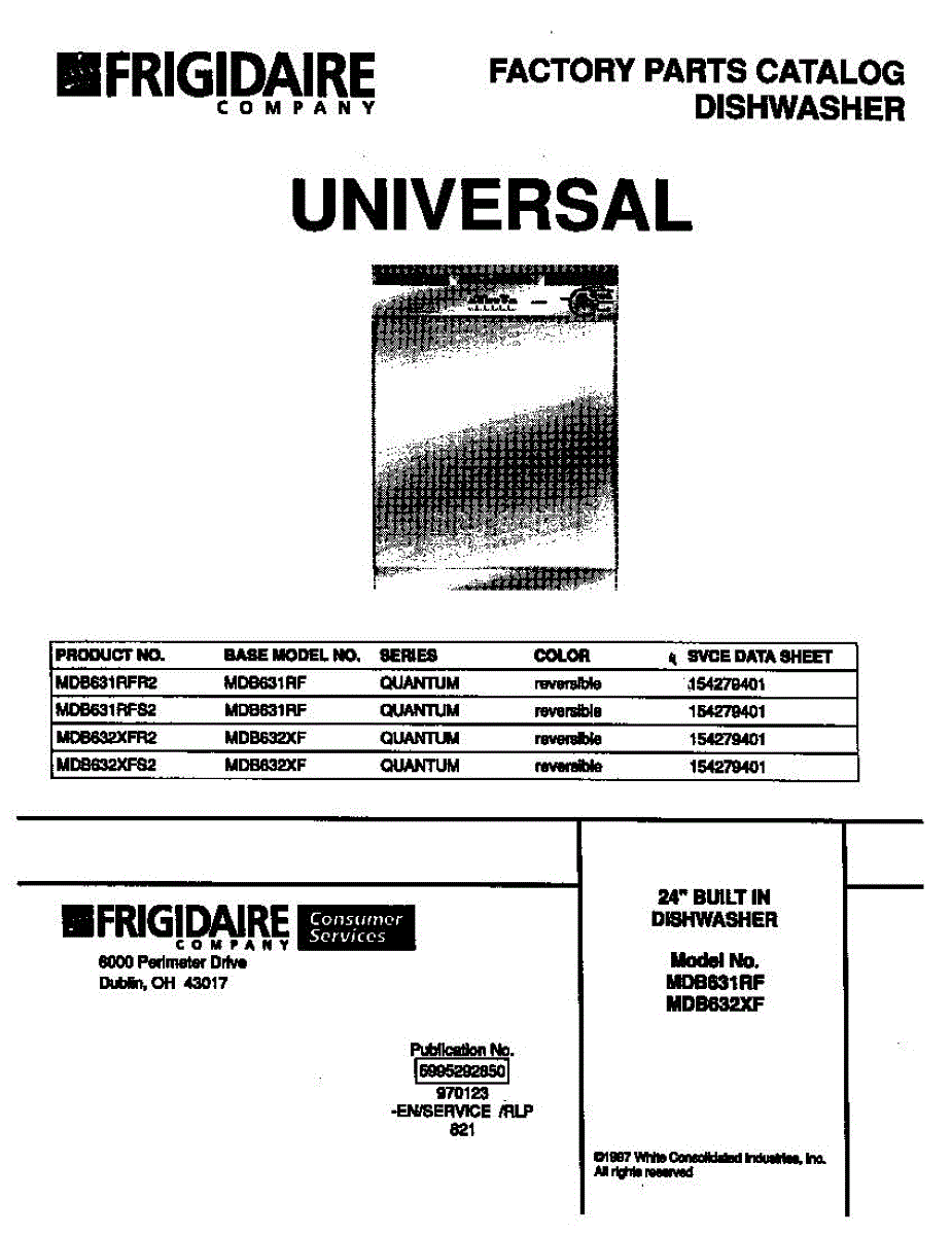 Parts for Frigidaire MDB631RFR2: 01 - Cover Parts