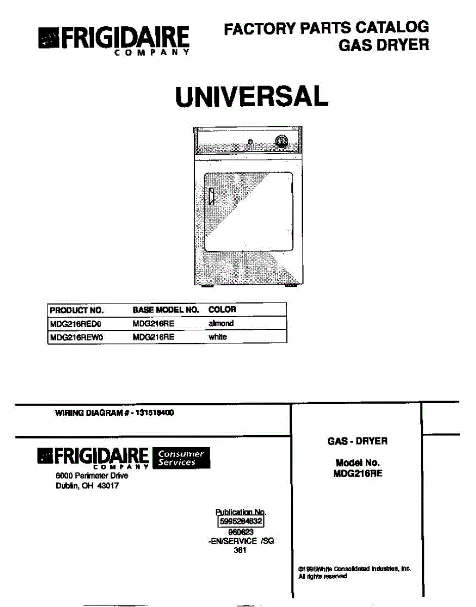 Parts for Frigidaire MDG216RED0: 01 - Cover Parts