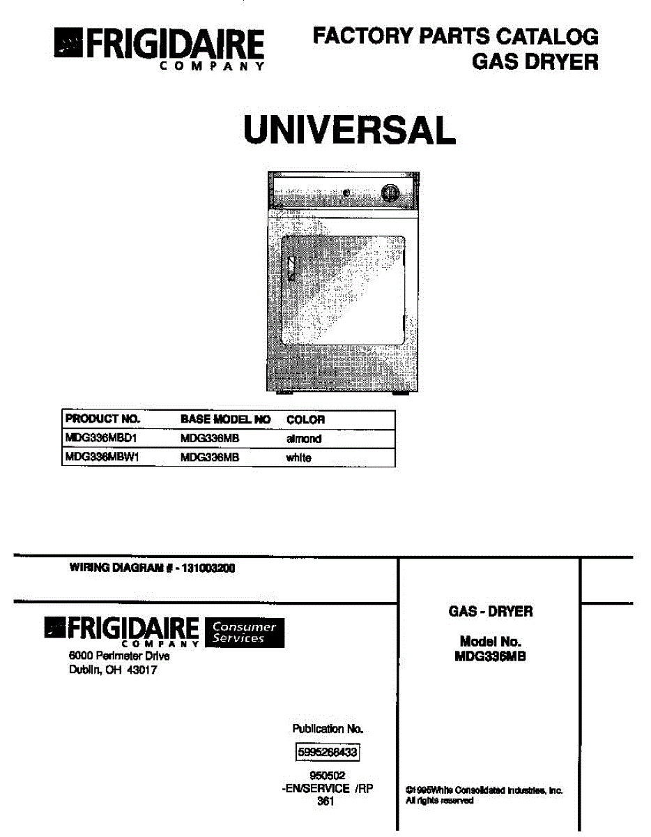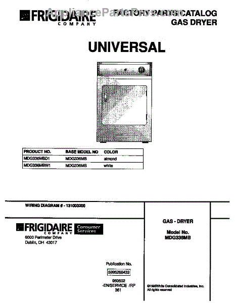 Parts for Frigidaire MDG336MBD1: 01 - Cover Parts