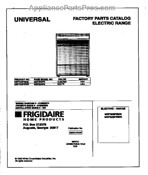 Parts for Frigidaire MEF300PBDK: 01 - Cover Parts