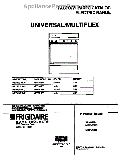 Parts for Frigidaire MEF300PBWH: 01 - Cover Parts