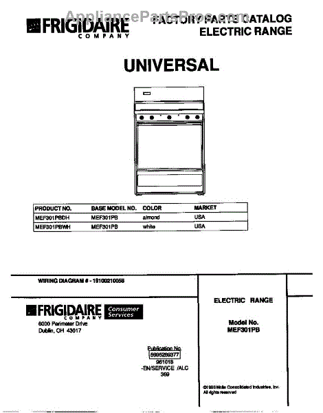 Parts for Frigidaire MEF301PBDH: 01 - Cover Parts