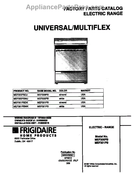 Parts for Frigidaire MEF301PBDK: 01 - Cover Parts