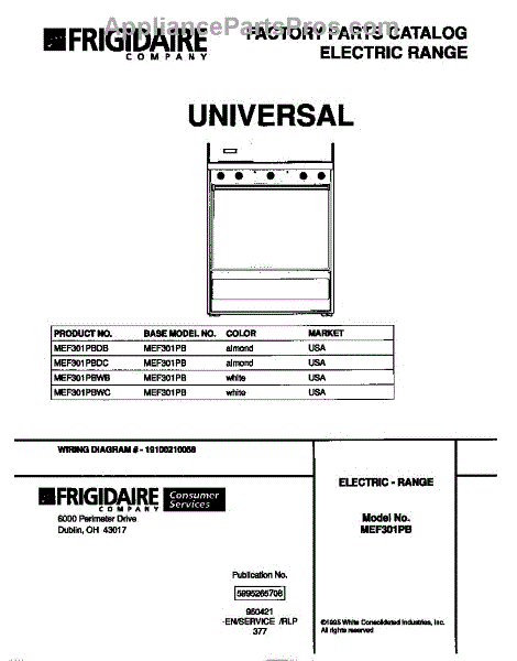 Parts for Frigidaire MEF301PBWC: 01 - Cover Parts