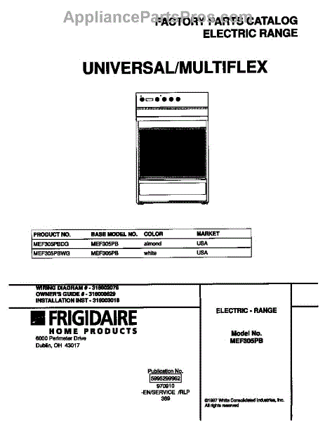 Frigidaire Range Parts