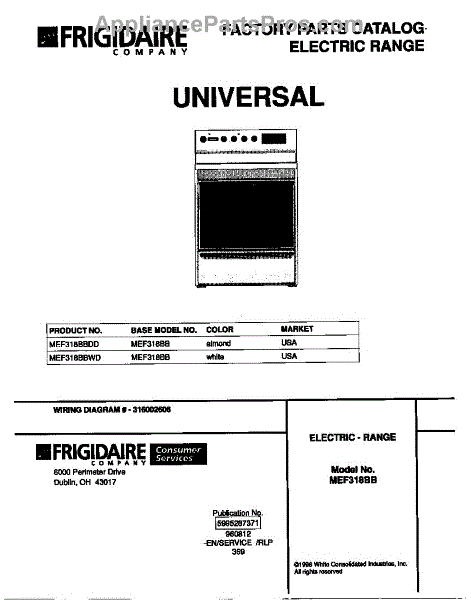 Parts for Frigidaire MEF318BBWD: 01 - Cover Parts