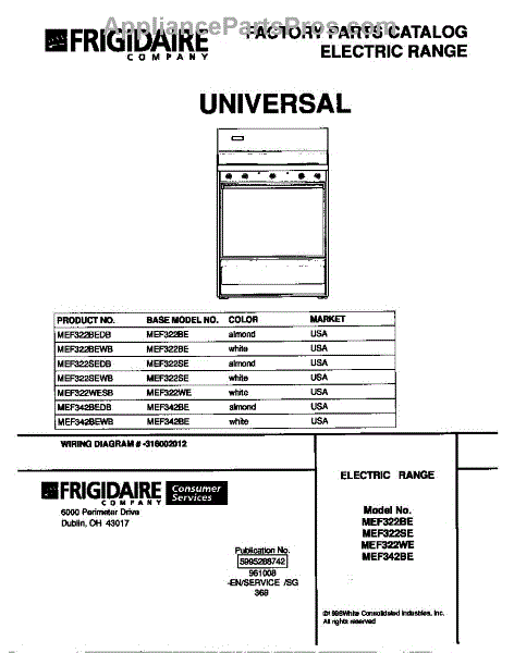Parts for Frigidaire MEF322BEDB: 01 - Cover Parts