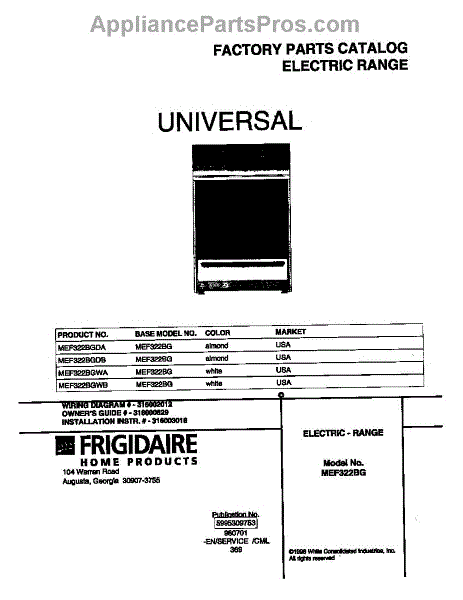 Parts for Frigidaire MEF322BGWB: 01 - Cover Parts