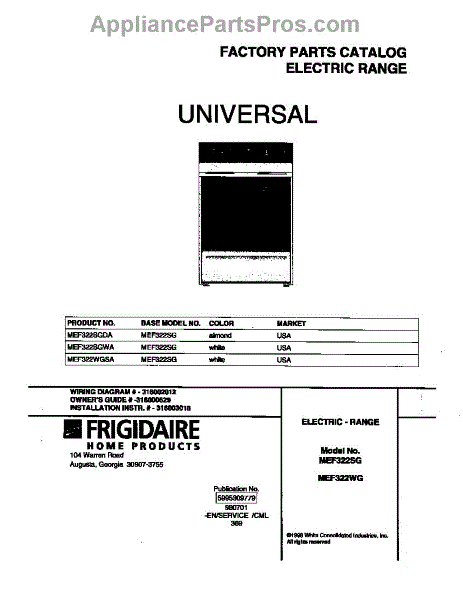 Parts for Frigidaire MEF322WGSA: 01 - Cover Parts