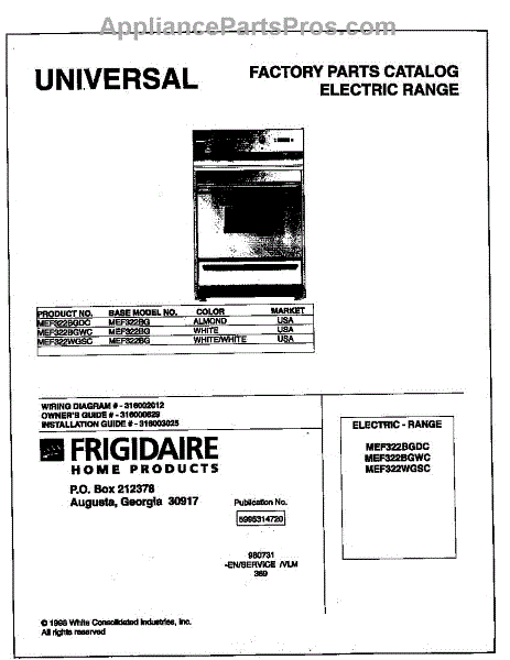 Parts for Frigidaire MEF322WGSC: 01 - Cover Parts