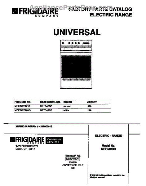Parts for Frigidaire MEF342BBWD: 01 - Cover Parts