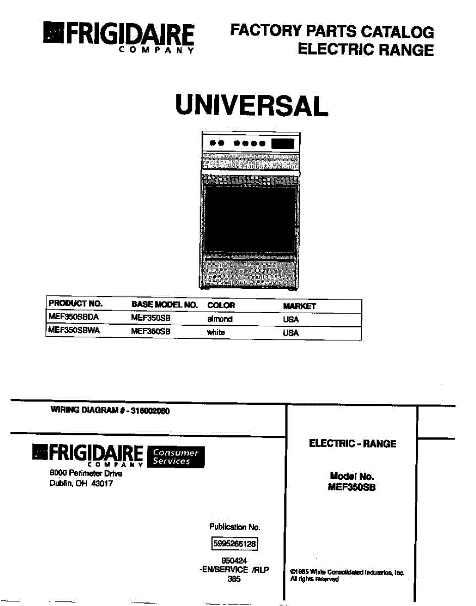 Parts for Frigidaire MEF350SBDA: 01 - Cover Parts