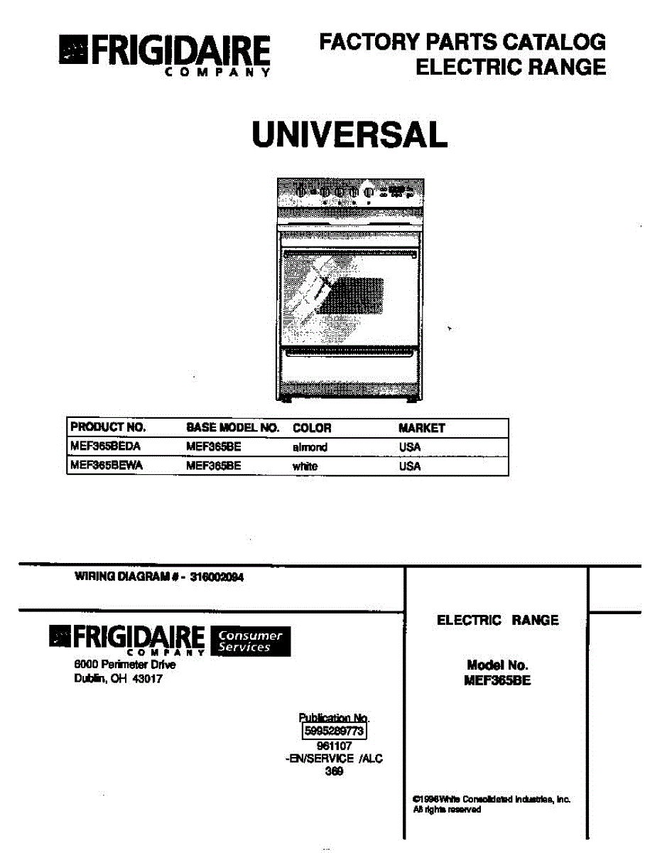 Parts for Frigidaire MEF365BEDA: 01 - Cover Parts