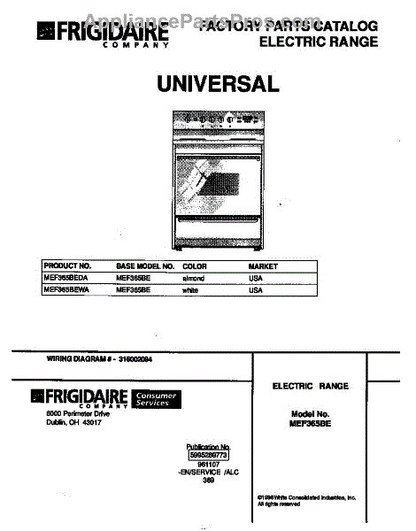 Parts for Frigidaire MEF365BEWA: 01 - Cover Parts
