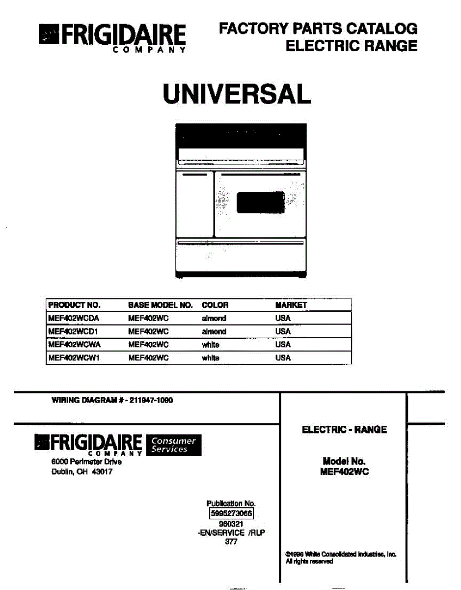 Parts for Frigidaire MEF402WCDA: 01 - Cover Parts