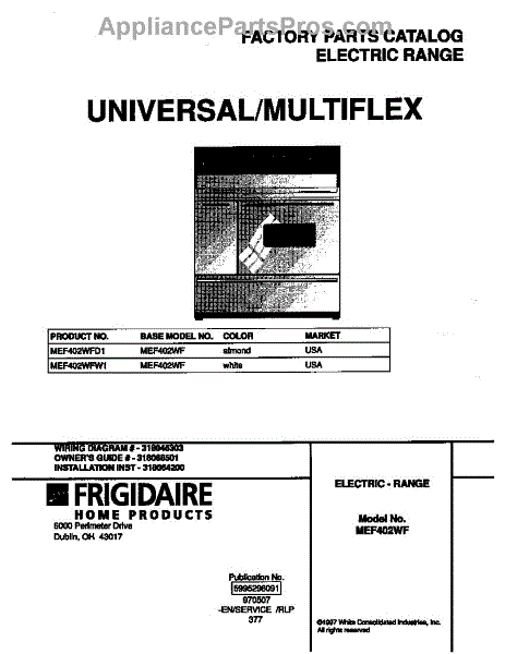 Parts for Frigidaire MEF402WFD1: 01 - Cover Parts