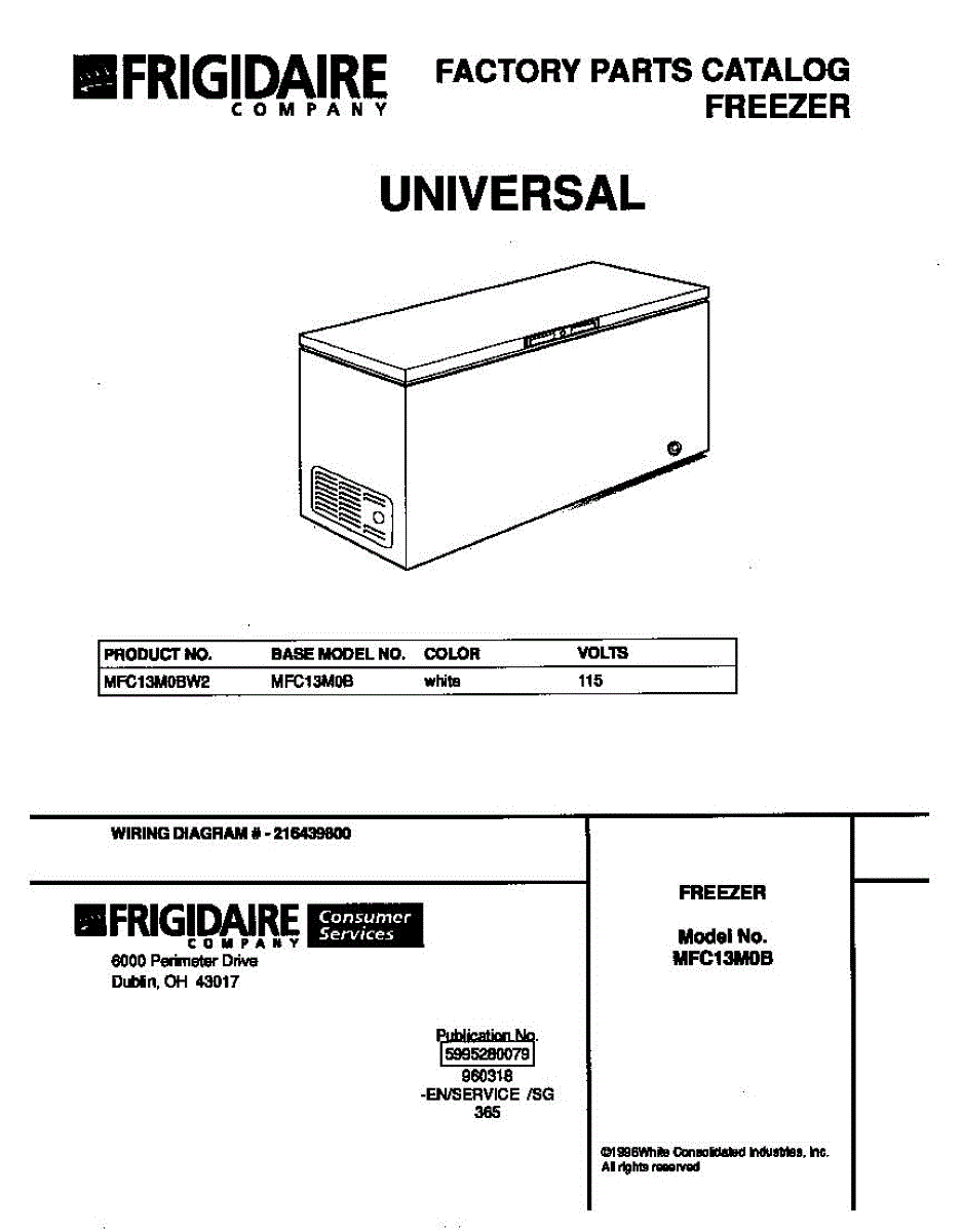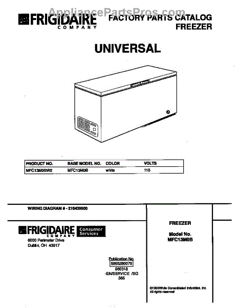 Parts for Frigidaire MFC13M0BW2: 01 - Cover Parts
