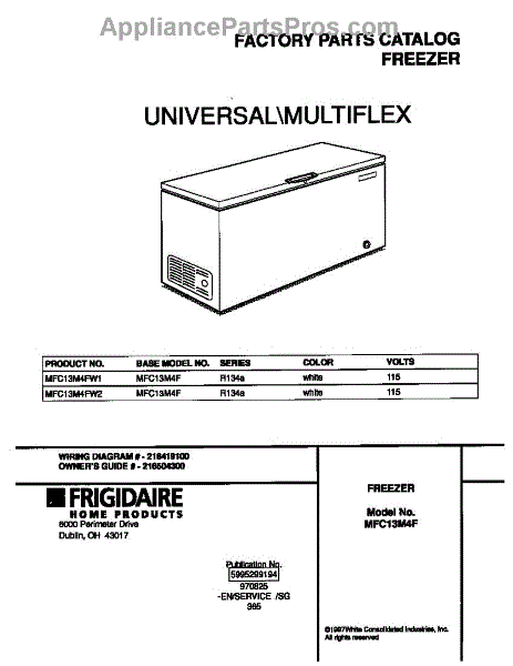 Parts for Frigidaire MFC13M4FW1: 01 - Cover Parts