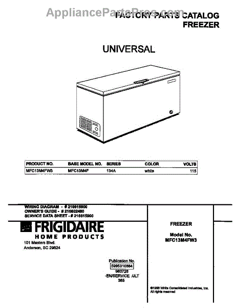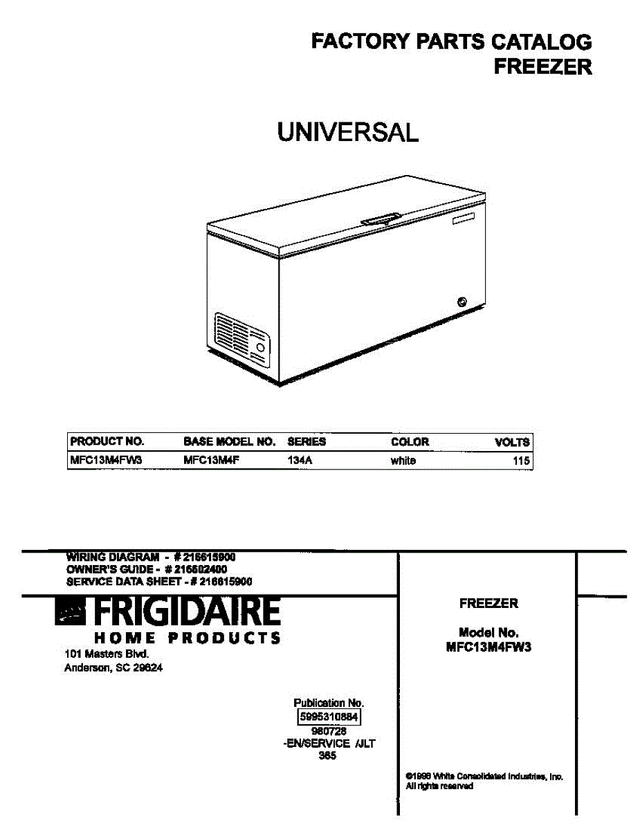 Parts for Frigidaire MFC13M4FW3: 01 - Cover Parts