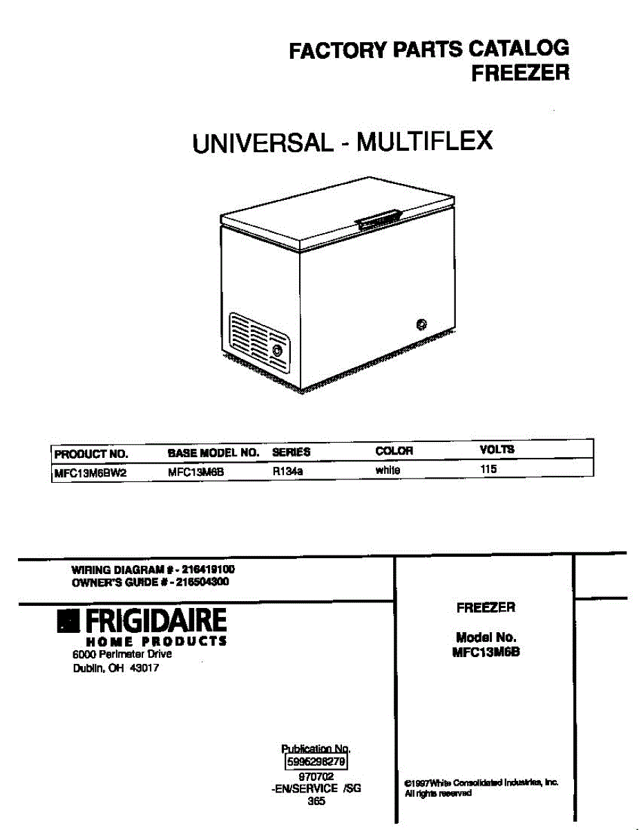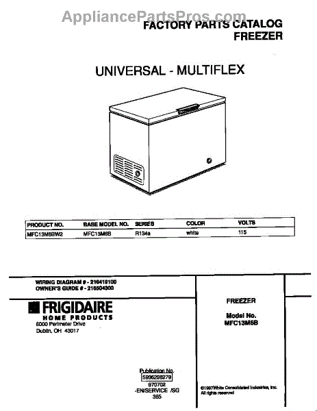 Parts for Frigidaire MFC13M6BW2: 01 - Cover Parts