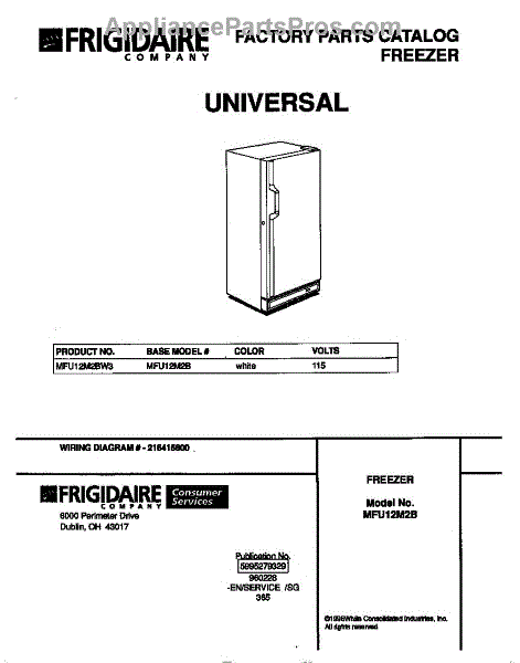Parts for Frigidaire MFU12M2BW3: 01 - Cover Parts