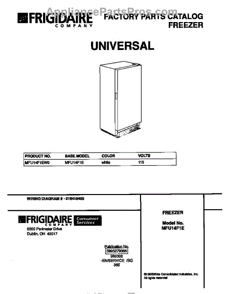 Parts for Frigidaire MFU14F1EW0: 01 - Cover Parts