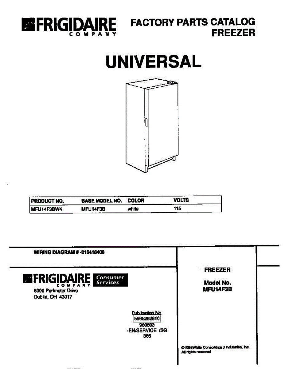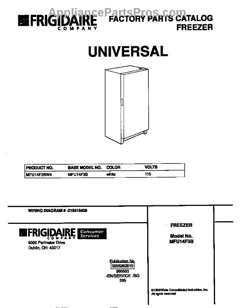 Parts for Frigidaire MFU14F3BW4: 01 - Cover Parts