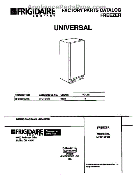 Parts for Frigidaire MFU16F3BW5: 01 - Cover Parts