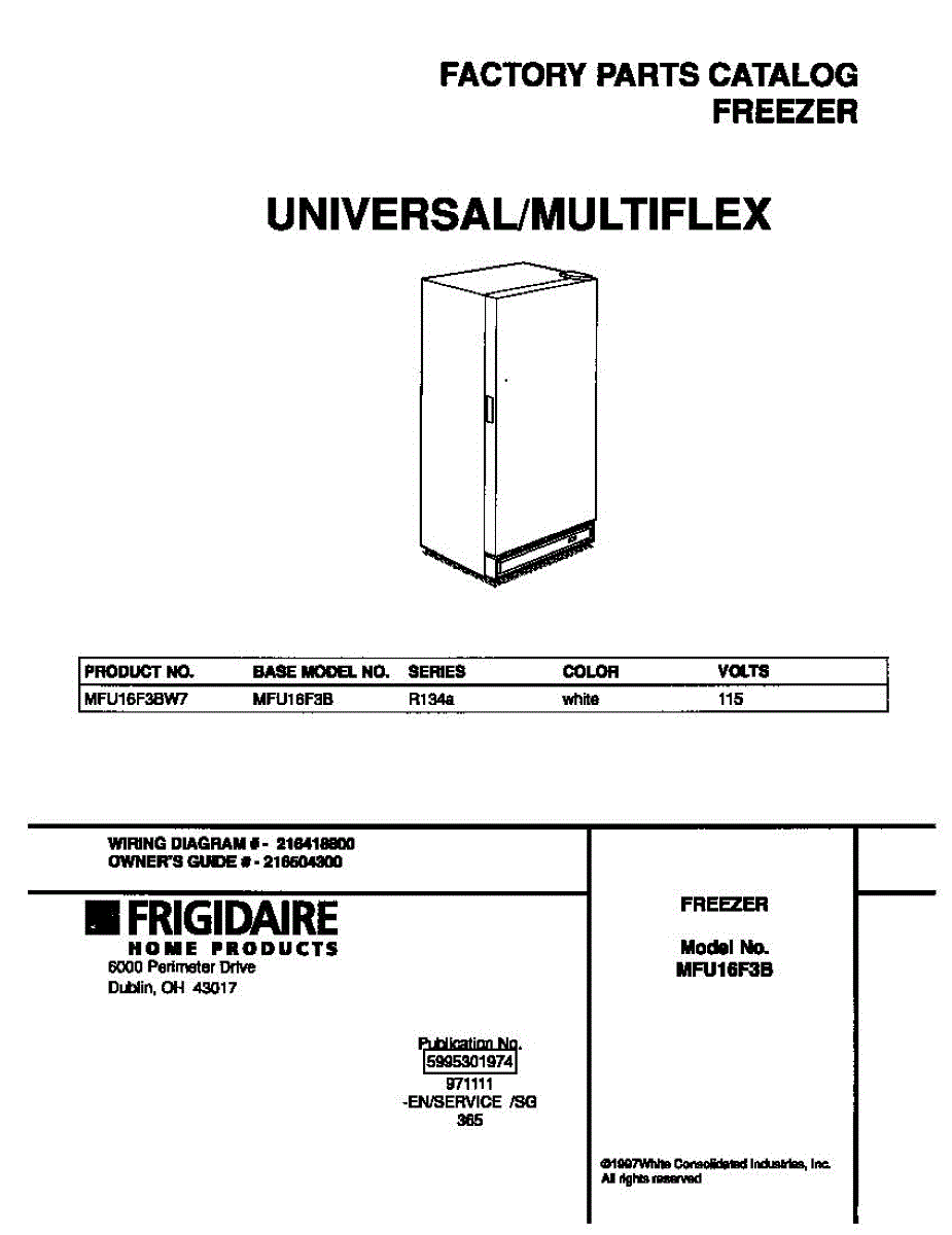 Parts for Frigidaire MFU16F3BW7: 01 - Cover Parts