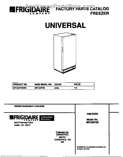 Parts for Frigidaire MFU20F3BW5: 01 - Cover Parts