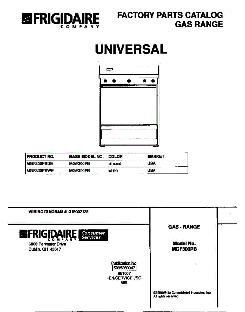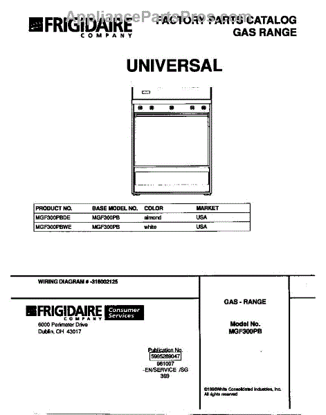 Parts for Frigidaire MGF300PBDE: 01 - Cover Parts