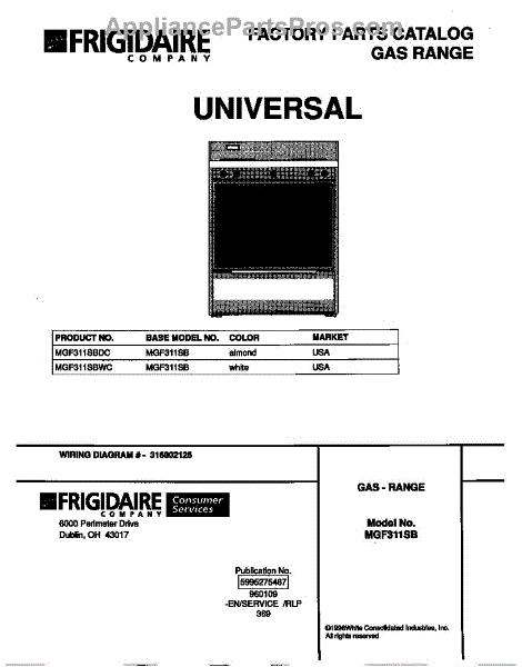 Parts for Frigidaire MGF311SBDC: 01 - Cover Parts
