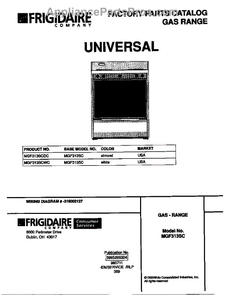 Parts for Frigidaire MGF313SCDC: 01 - Cover Parts