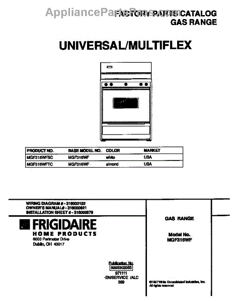 Frigidaire Range Parts