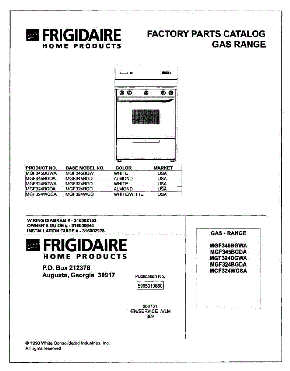 Parts for Frigidaire MGF324BGDA: 01 - Cover Parts