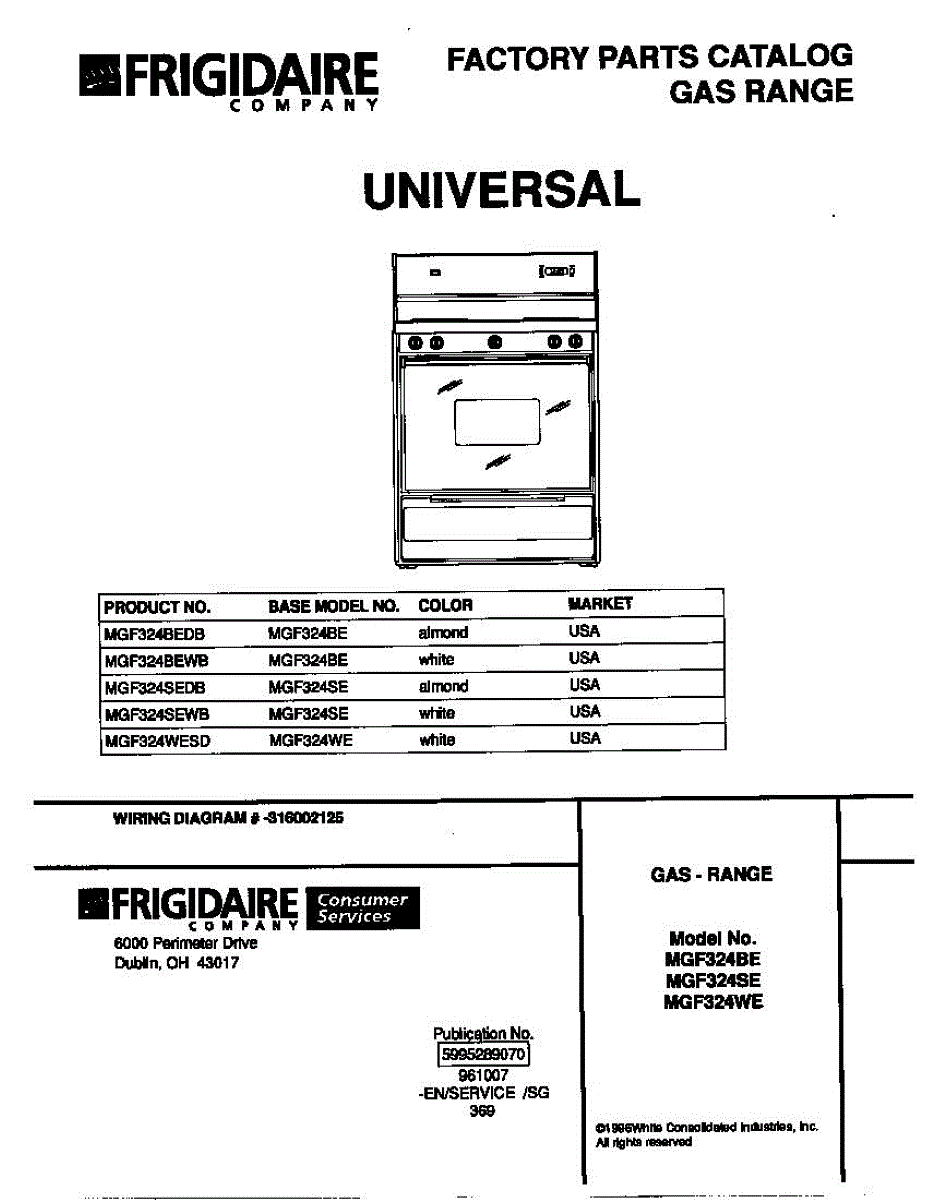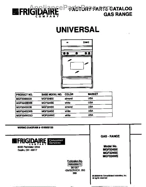 Parts for Frigidaire MGF324SEWB: 01 - Cover Parts