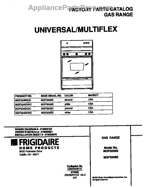 Frigidaire Range Parts