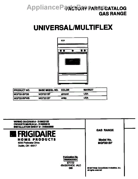 Parts for Frigidaire MGF331BFWB: 01 - Cover Parts