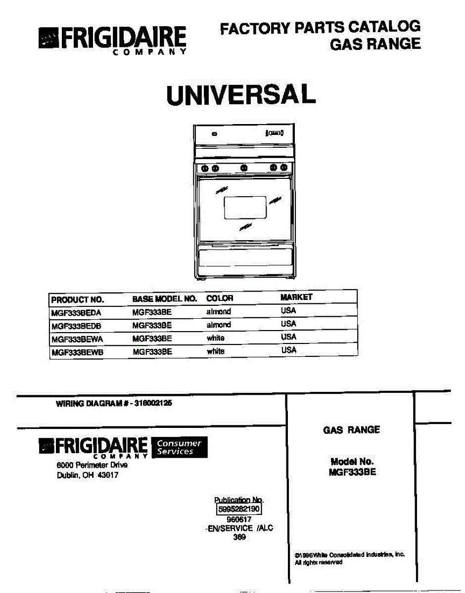 Parts for Frigidaire MGF333BEDA: 01 - Cover Parts