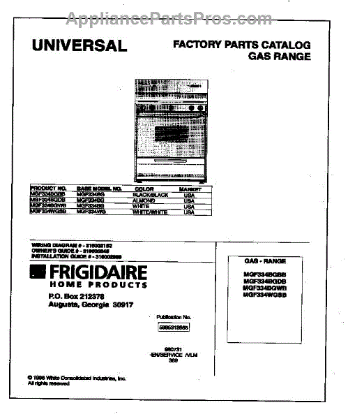 Parts for Frigidaire MGF334WGSB: 01 - Cover Parts