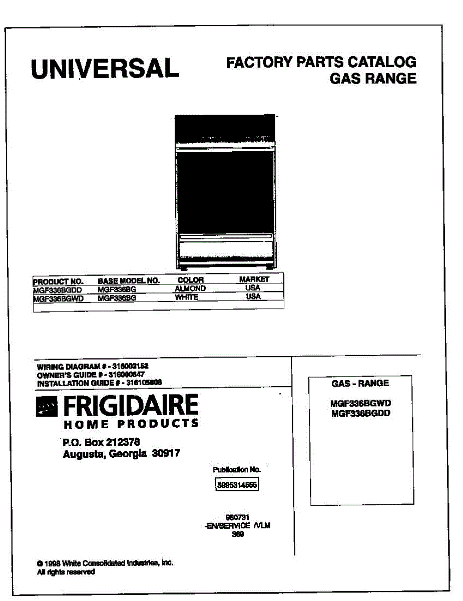 Parts for Frigidaire MGF336BGDD: 01 - Cover Parts