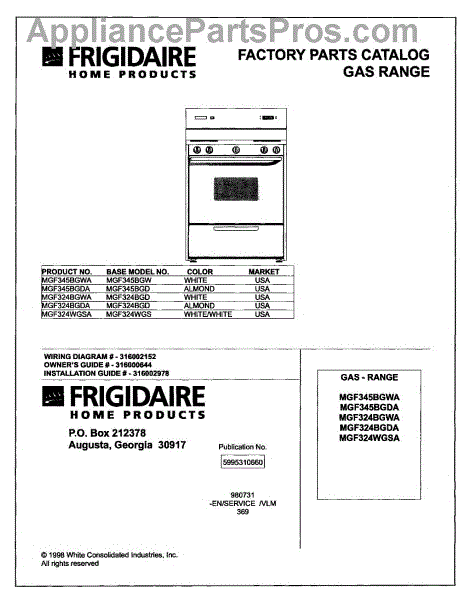 Parts for Frigidaire MGF345BGDA: 01 - Cover Parts