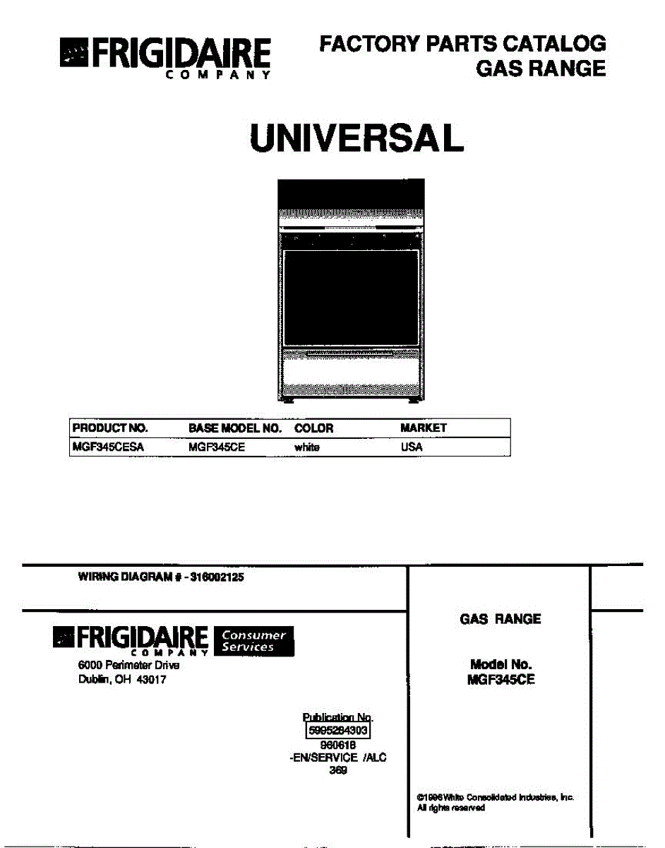 Parts for Frigidaire MGF345CESA: 01 - Cover Parts