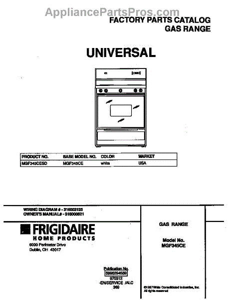 Parts for Frigidaire MGF345CESD: 01 - Cover Parts