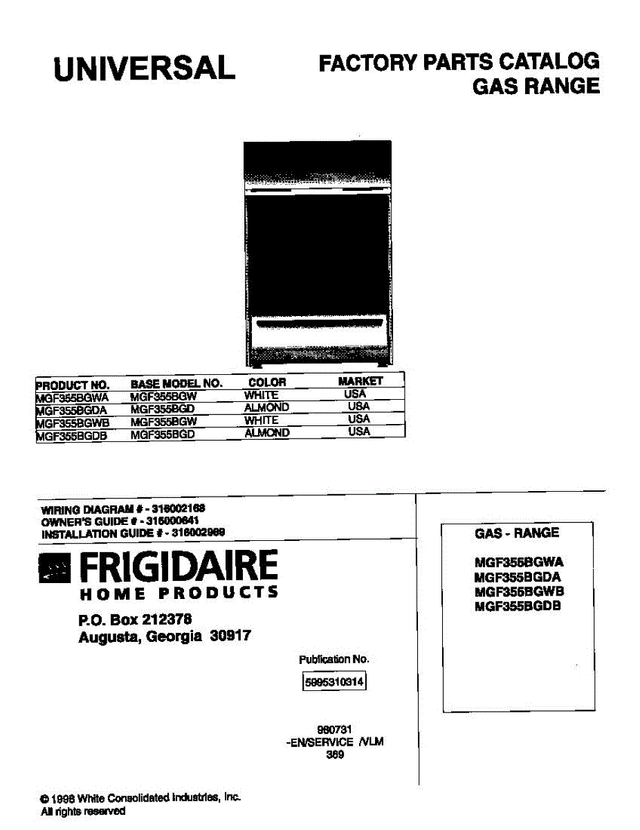 Parts for Frigidaire MGF355BGDA: 01 - Cover Parts