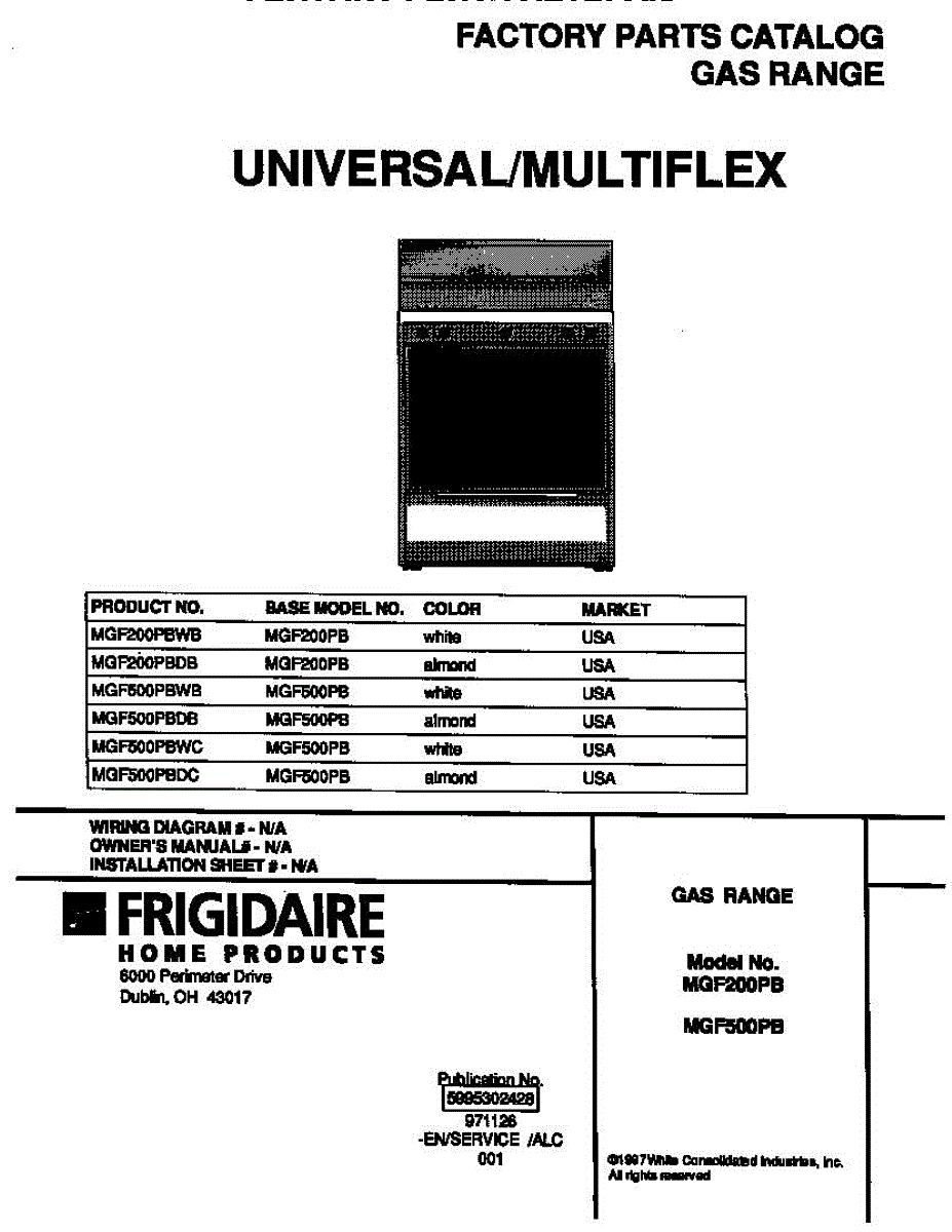 Parts for Frigidaire MGF500PBDB: 01 - Cover Parts