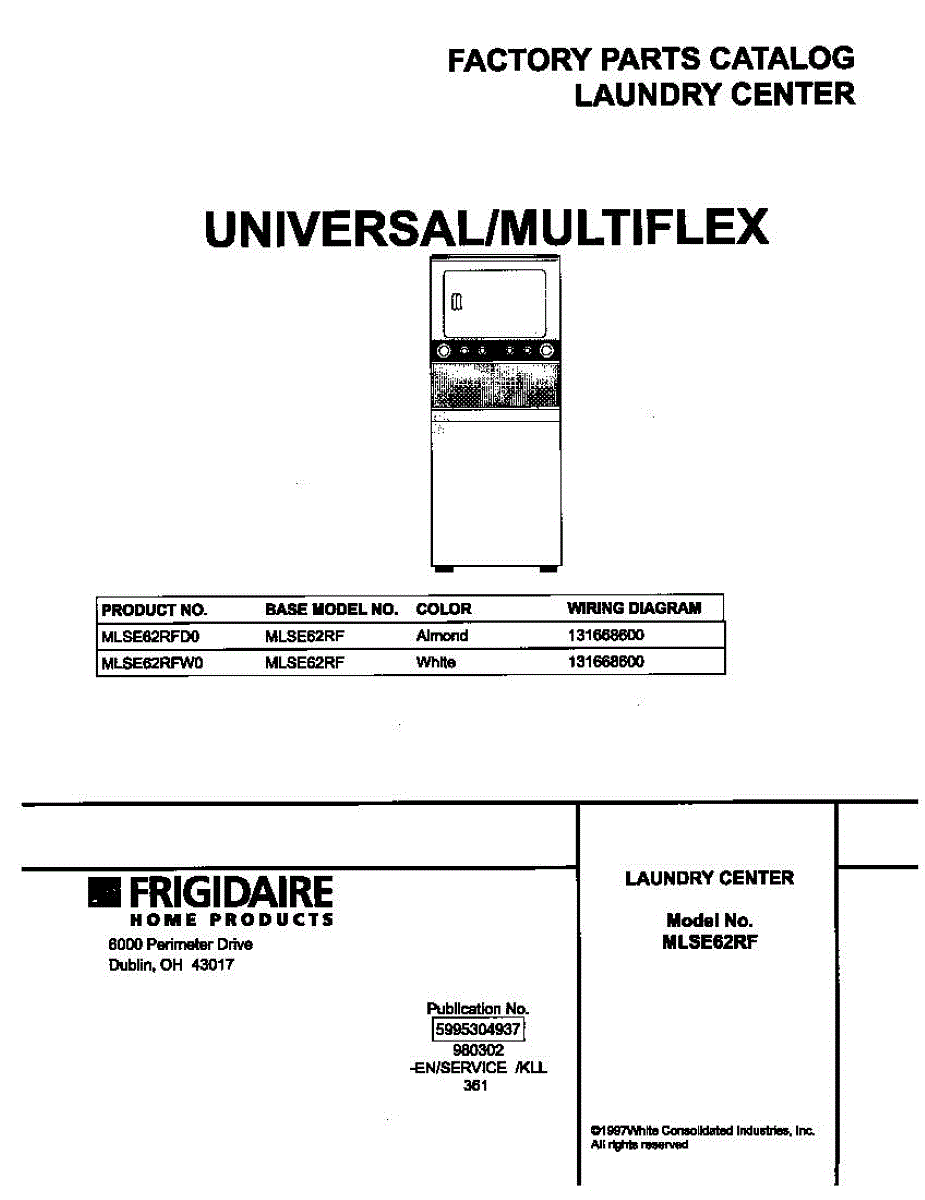 Parts for Frigidaire MLSE62RFD0: 01 - Cover Parts