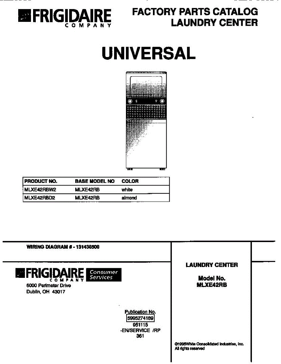 Parts for Frigidaire MLXE42RBW2: 01 - Cover Parts