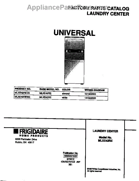 Parts for Frigidaire MLXE42RED3: 01 - Cover Parts
